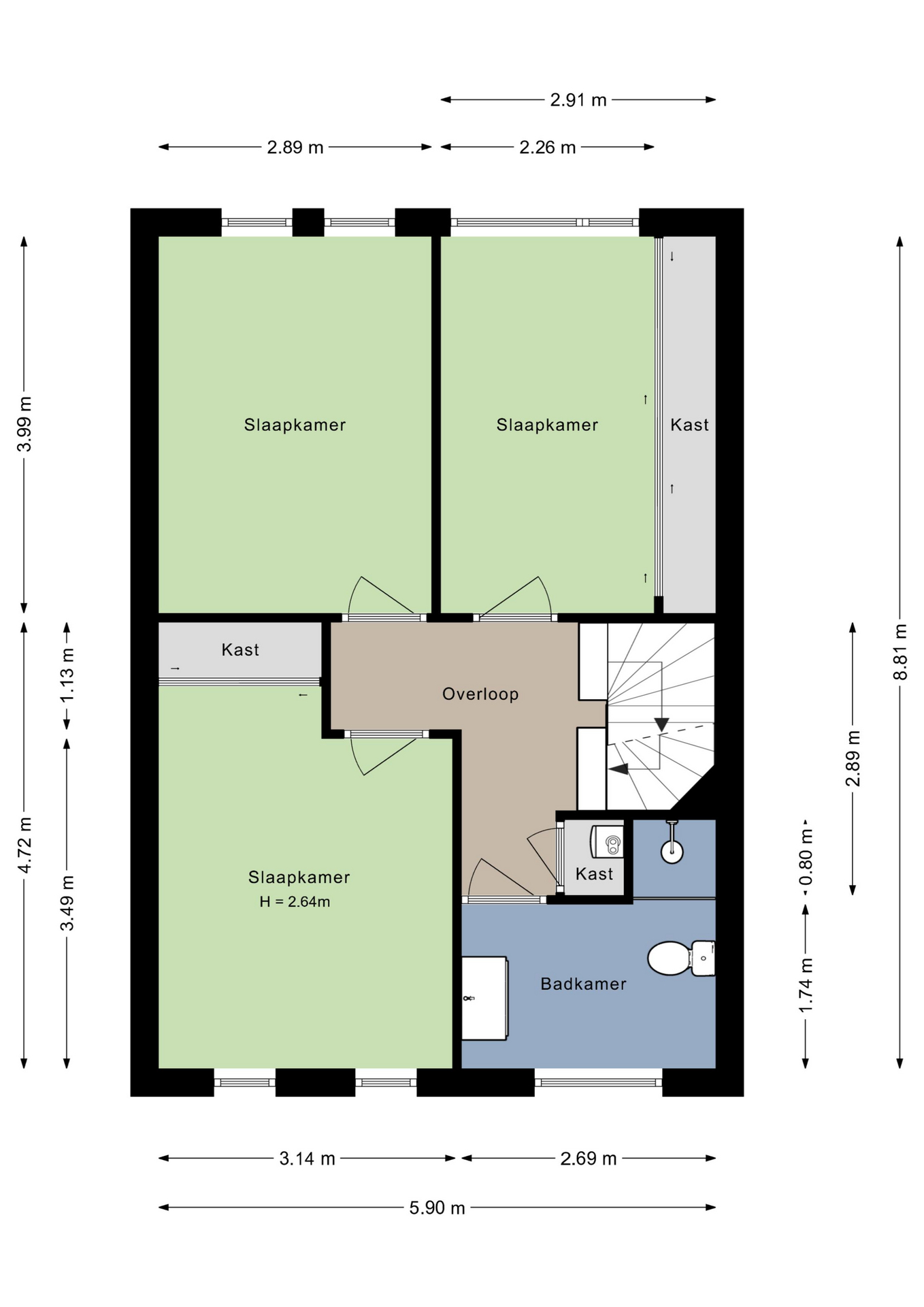 – Vier slaapkamers, waarvan een op de tweede verdieping;