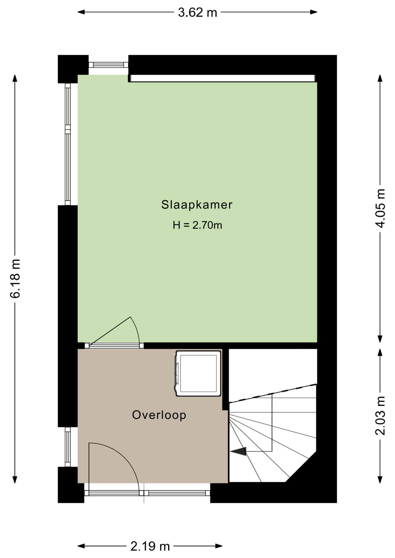 In 2021 is de dakopbouw geplaatst, inclusief een vaste trap. Aan het einde van de trap is een multifunctionele ruimte, waar de wasmachine en droger staan. Aansluitend is de vierde slaapkamer, met veel lichtinval en een witte laminaatvloer. Deze kamer is nu in gebruik als werkkamer, maar een invulling als kinderkamer of master bedroom is ook een uitstekende keuze.