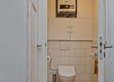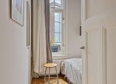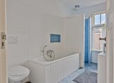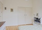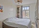 Aan de voorzijde zijn de slaapkamers, waaronder de master bedroom met een inbouwkast. De originele houten vloer is zichtbaar en hoge stijlplafonds zorgen voor kamers met de juiste looks. De badkamer is ingedeeld met een inloopdouche, wastafelmeubel, wandcloset (bidetfunctie) , een brede vaste kast en onder de lichte vloertegels ligt vloerverwarming.