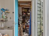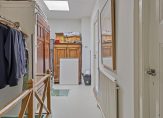 In het achterste deel van de woonkamer zijn een portaal/wasruimte, uitgevoerd met een wandcloset met bidetfunctie en een fonteintje. In het verlengde van het portaal is een dubbele berging/hobbyruimte, beiden met een deur naar de tuin.