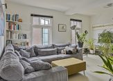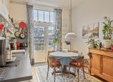 Vanaf de overloop zijn twee slaapkamers, de badkamer, een zit-/eetkamer met keuken en het toilet te bereiken. Fraaie elementen zijn de paneeldeuren, hoge plafond en het licht dat op de overloop via het plafond naar binnen valt. De zit-/eetkamer met keuken, die toegang biedt tot het balkon, kan uiteraard ook als slaapkamer worden gebruikt. De keuken op deze verdieping is uitgevoerd als wandopstelling, voorzien van een inductie kookplaat met afzuiging en een Quooker kraan (de keuken is ter overname).