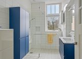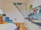 Aan ruimte geen gebrek, want de tweede verdieping kent dankzij de rechte buitengevels geen ruimteverlies. Vanaf de overloop, met een lichtkoepel, zijn een badkamer, slaapkamer en een woonkamer te bereiken.