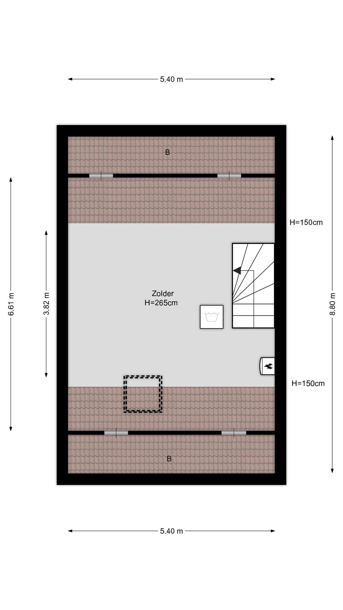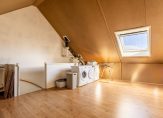 Welke invulling geef je aan de grote, multifunctionele tweede verdieping? Aan de achterzijde is een dakraam geplaatst, in de schuinten van het dak is bergruimte en de hoge nok maakt het mogelijk om een vliering te realiseren. Met een vloeroppervlakte van circa 35 m2, met laminaat op de betonvloer, is het mogelijk om hier een of twee extra slaapkamers en een wasruimte te realiseren.