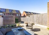 In het voortuintje zie je bestrating, grind, een beukenhaag en er is plek voor een containeropslag. En spelen de kinderen graag buiten, zet dan een bankje op het grind en geniet van de ochtend-/middagzon!
