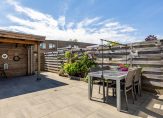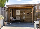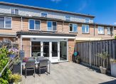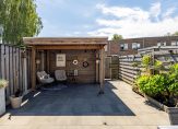 Vanuit de woonkamer heb je mooi uitzicht naar de grotendeels betegelde achtertuin, op het zonnige zuiden. Aan de voorzijde van de berging is een veranda gebouwd en er is een poort naar de steeg. De beplanting heeft weinig onderhoud nodig en komt er een gezin wonen, dan is er een prima speelplek te maken. Of wordt het toch een zomers zwembad voor urenlang waterplezier?