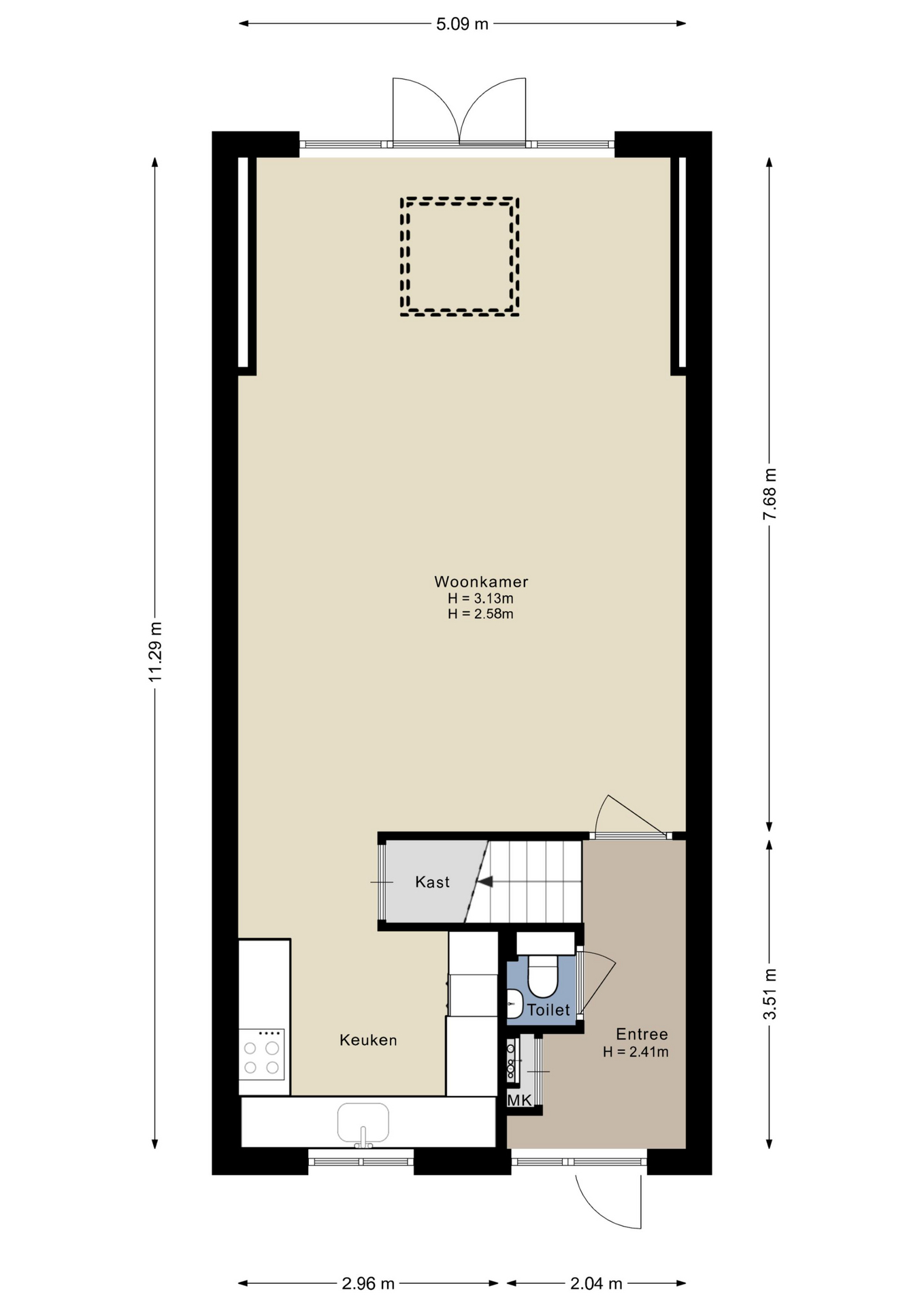 – Kunststof kozijnen (m.u.v. hal) met HR++ glas;