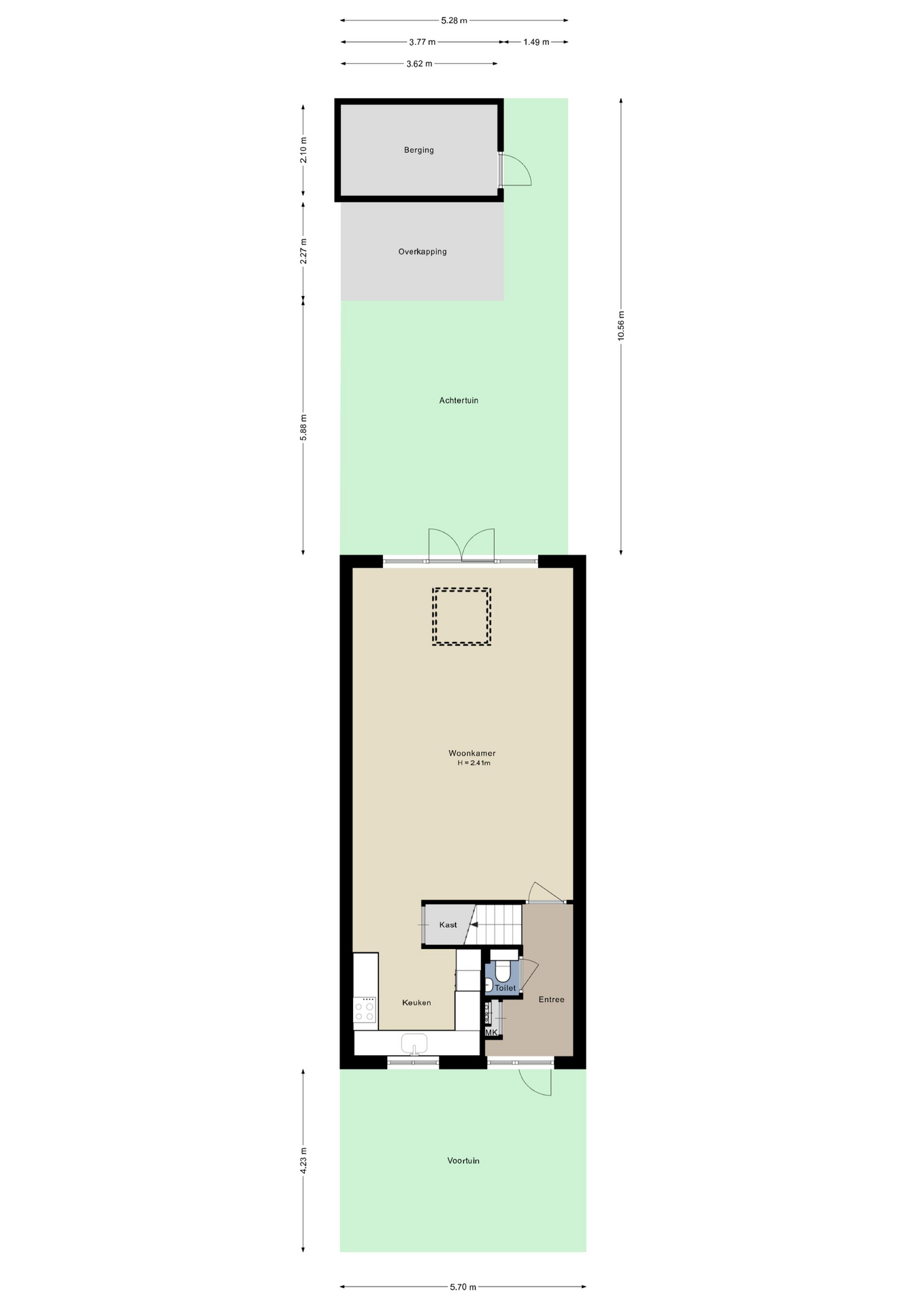 – Zonnige achtertuin (zuid) met een veranda, berging en achterom;