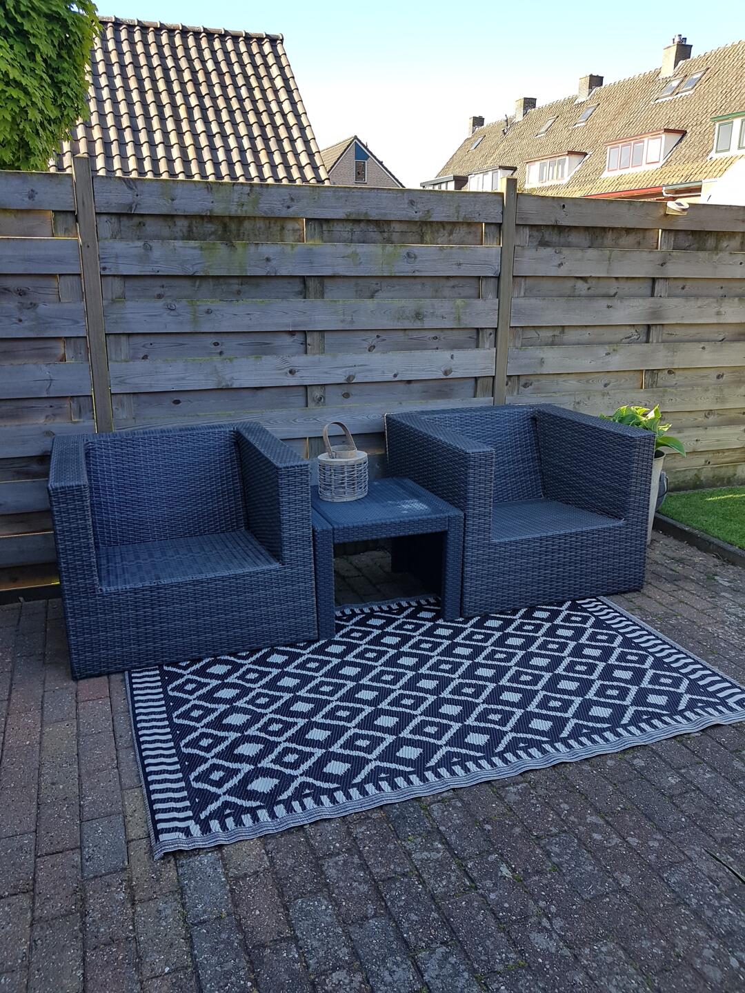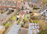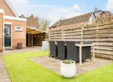 Links van de woning is een overkapping gebouwd, die aan de tuinzijde open is en aan de kant van de oprit is een deur geplaatst. Voor de fiets en scooter is dit een prima plek!