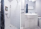 In de toiletruimte zorgt kleurrijk behang voor sfeer en de naastgelegen badkamer is ingedeeld met een ligbad, douchehoek en een wastafelmeubel.