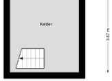 In de hoek van de woonkamer is een trap naar de wijn-/provisiekelder, met een dubbel raam voor ventilatie.