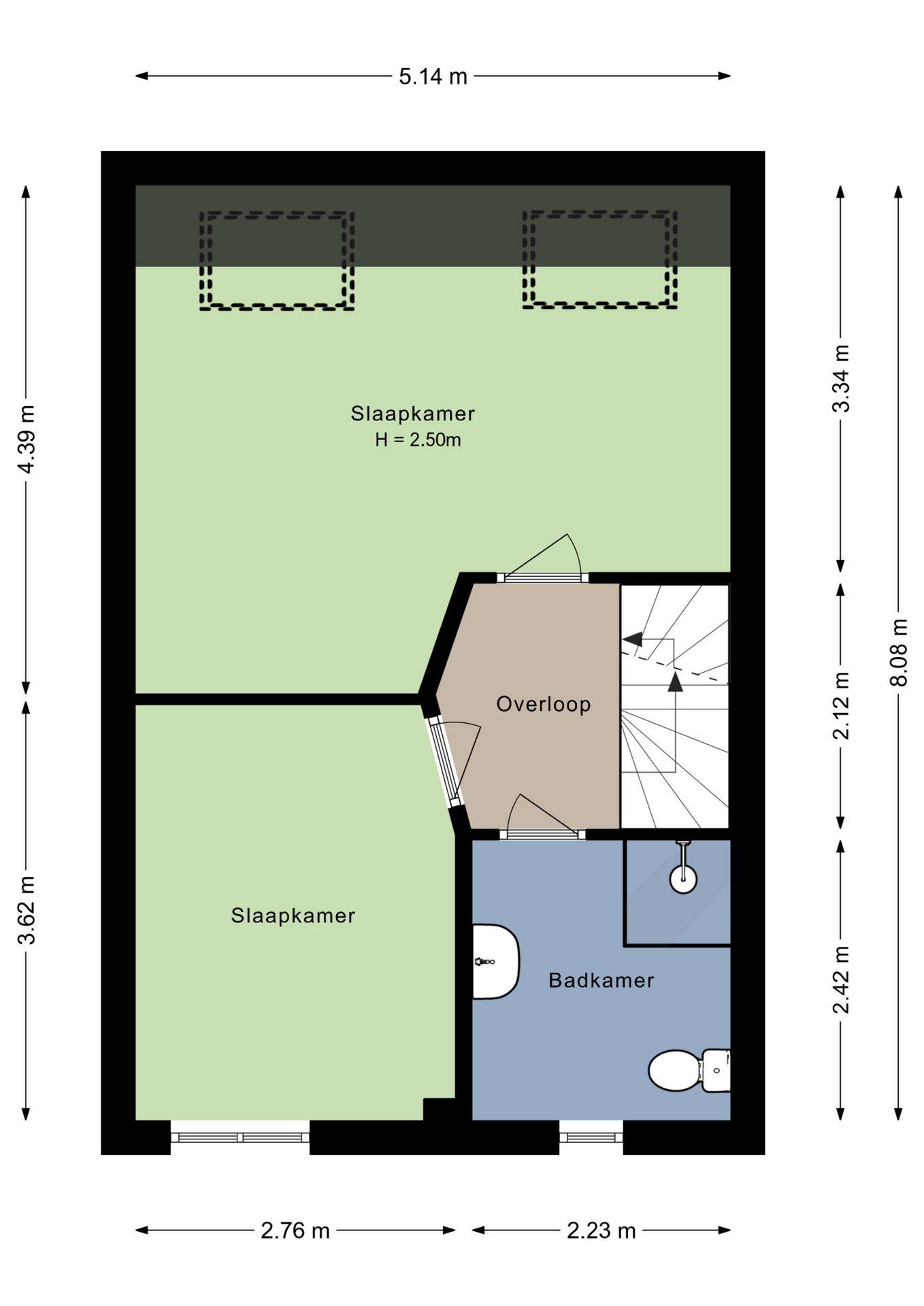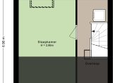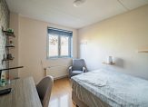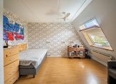 Aan de achterzijde zijn twee slaapkamers samengevoegd tot een kamer over de hele breedte van het huis, met twee dakramen aan de zuidwestkant. Ook de tweede slaapkamer, aan de voorzijde, is groot genoeg om in te richten met een tweepersoonsbed. In beide slaapkamers en op de overloop ligt laminaat op de vloer.