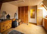 De sfeervolle slaapkamer met dakkapel, dakraam en vaste kasten bevindt zich aan de voorzijde.