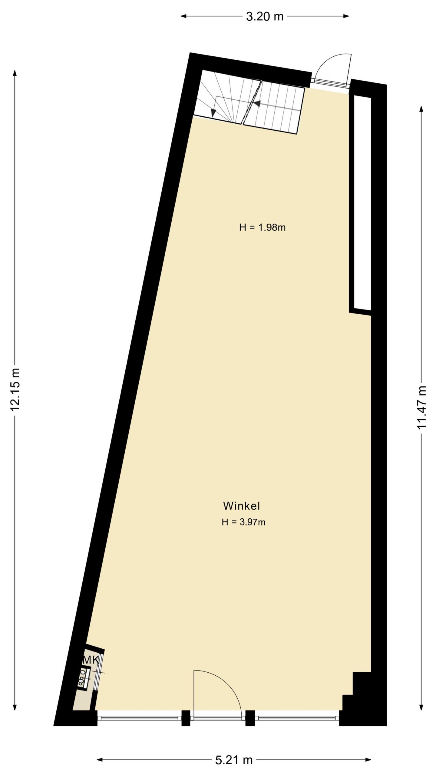 In het midden van de voorgevel is de entree, die toegang geeft tot de winkelruimte. Wat opvalt zijn het bijna 4 meter hoge plafond en de grote etalageruiten, waardoor de winkel heel licht en ruimtelijk oogt. Aan de achterzijde is de hoogte goed benut, met een entresol die ook als winkelruimte in gebruik is. Dit geldt ook voor het souterrain, dat heel goed bruikbaar is met een hoogte van circa 2 meter.