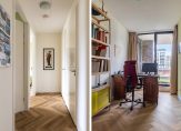In het linkerdeel van het appartement zijn twee slaapkamers, de badkamer en een inpandige berging. Beide slaapkamers hebben, net als de woonkamer, een deur naar het balkon en mooi uitzicht richting de binnenhaven. Een van de kamers is in gebruik als werk-/studeerkamer en in de master bedroom staat een maatwerk garderobekast met schuifdeuren.