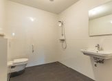 De badkamer, met geheel betegelde wanden, is ingedeeld met een douchehoek, een tweede toilet en een wastafel met spiegel. In de berging is onder ander plek voor de wasmachine, droger, een vriezer en vele andere spullen.