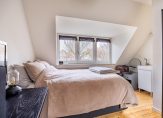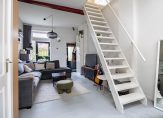 Een open, houten trap geeft toegang tot de overloop, waar de HR-ketel een plekje heeft gekregen. Aansluitend is de riante slaapkamer met een wastafelmeubel, dakraam en een grote dakkapel. De houten vloer versterkt de sfeer in deze kamer, die genoeg ruimte biedt om een groot tweepersoonsbed en (kleding)kasten neer te zetten.