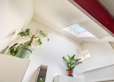 – Bergruimte toevoegen door een plafondluik te maken in de overloop boven aan de trap (of in de slaapkamer). De nok van het dak komt dan beschikbaar als bergruimte.