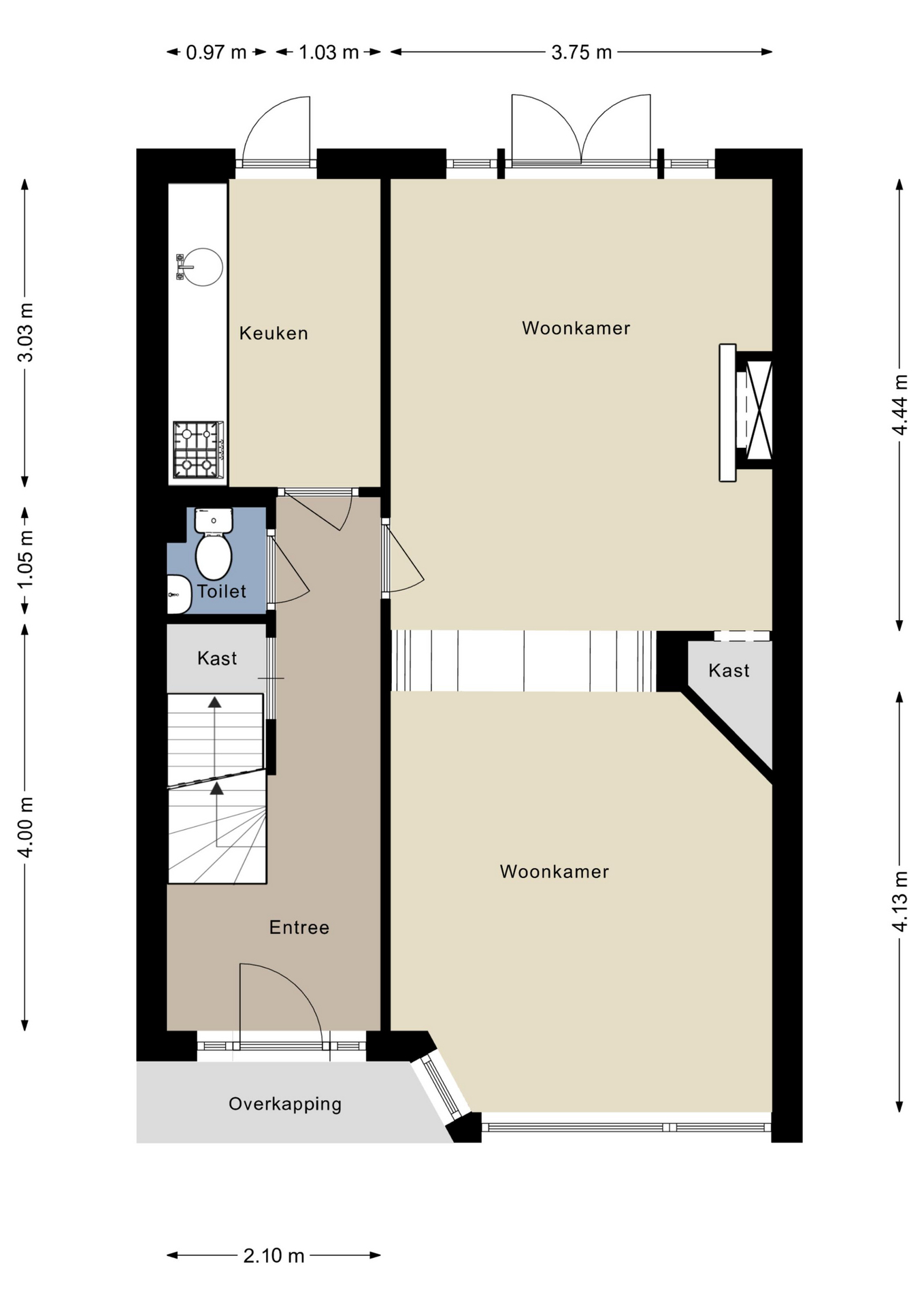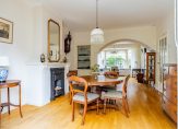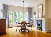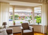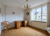 In de woonkamer zie je een mooie verdeling tussen het zit- en het eetgedeelte, met een schouw bij het eetgedeelte en parket op de vloer. Door de grote ramen aan de oost- en westkant valt veel licht naar binnen en om de achtertuin te bereiken, open je de openslaande deuren bij het eetgedeelte.