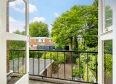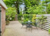 Ook het balkon, op de eerste verdieping, is op het westen gericht. De voortuin, met lage beplanting en een brede haag, geeft de woning een vriendelijke uitstraling.