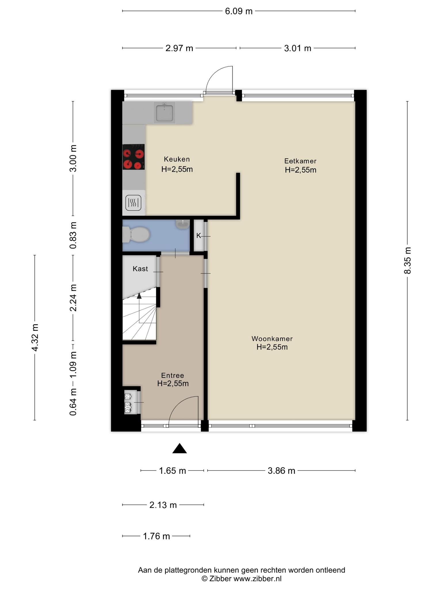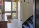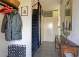 Bij het plantsoen is een autovrij pad dat je, via de voortuin, naar de voordeur van deze woning brengt. Achter deze deur is de hal die, net als de rest van het huis, heel licht is. Aan de linkerzijde zijn de meterkast, trapopgang en een handige bergkast. De naastgelegen toiletruimte met fonteintje heeft een ruime opzet.