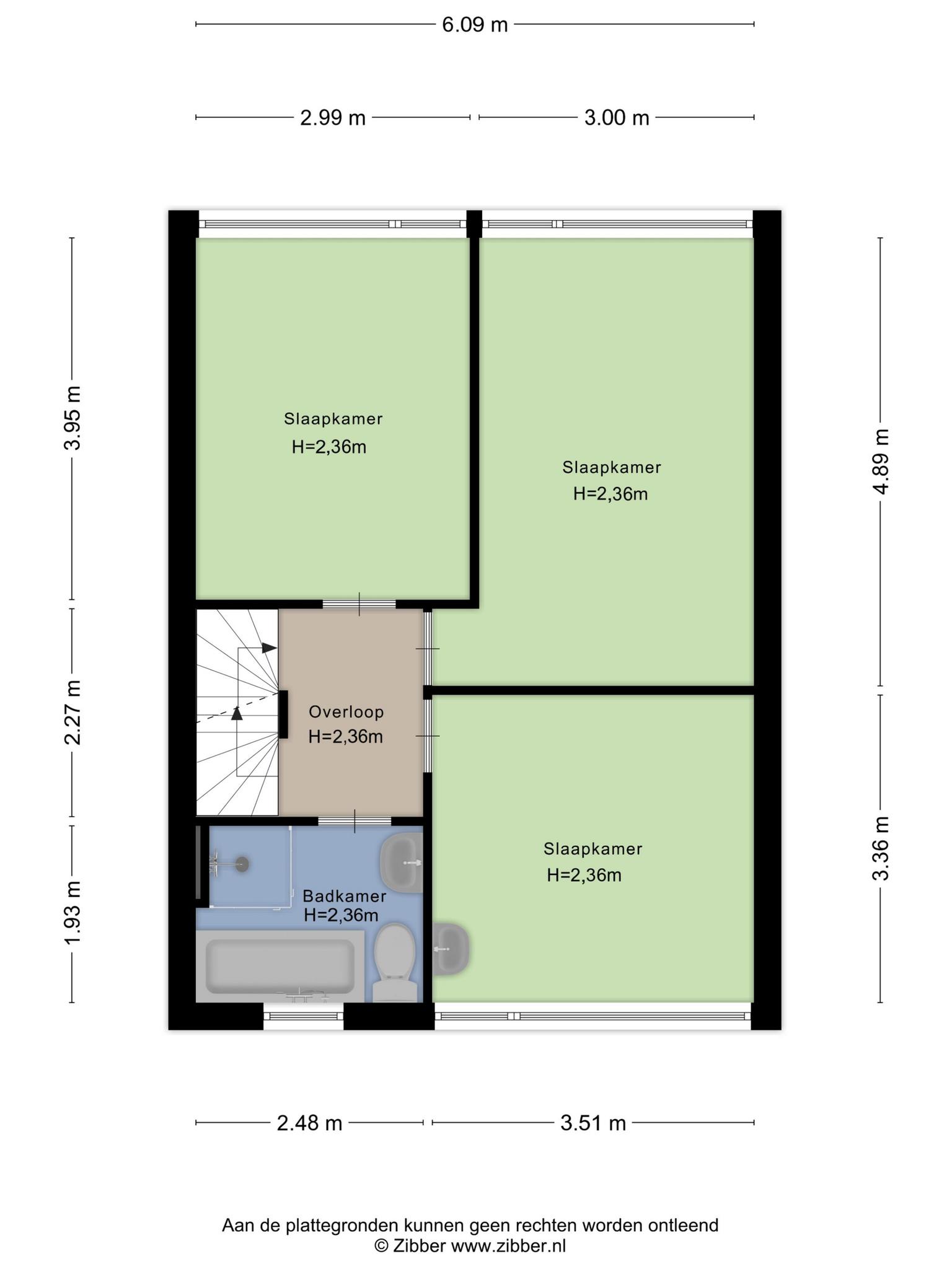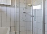Met een breedte van meer dan 6 meter is er ook veel ruimte op de eerste verdieping. Dat zie je vooral in de slaapkamers, drie in totaal. In de slaapkamer aan de voorzijde hangt een wastafel en één van de slaapkamers aan de achterzijde is de grootste van de drie. De badkamer, uitgevoerd in lichte kleuren, is ingedeeld met een ligbad, aparte douche, tweede toilet en een wastafel.