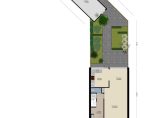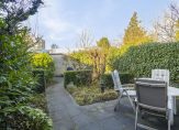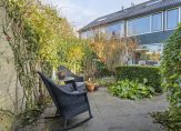 Vanuit de keuken loop je de achtertuin in, op het zonnige westen. Er zijn twee terrassen gemaakt, waardoor er de hele dag een plekje in de zon is om te zitten. Ook hier zie je veel groen in de tuin, waardoor het een tuin met een gezellige sfeer is. Voor de auto, fietsen en andere spullen is de garage een geschikte plek en via de poort is het gezamenlijke binnenterrein te bereiken.