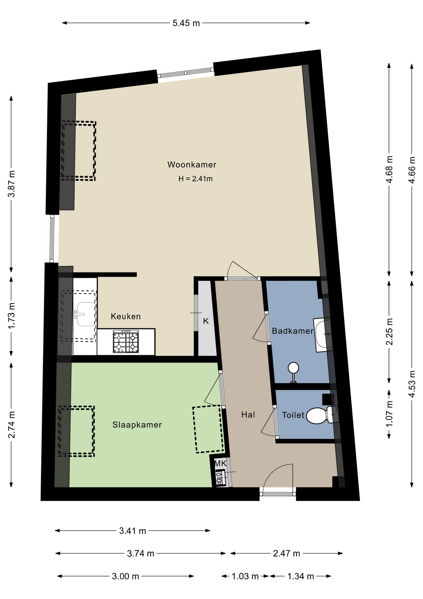 – Lichtinval aan twee zijden;