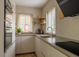 In 2022 is de moderne keukenopstelling geplaatst, met een stijlvol composiet aanrechtblad en een hoge kastenwand. Alle benodigde apparatuur is ingebouwd: een inductiekookplaat, afzuigkap, vaatwasser, oven, magnetron, koelkast en een vriezer.