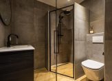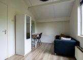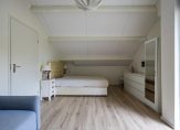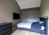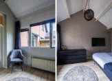 De badkamer, geheel vernieuwd in 2022, is fraai uitgevoerd met een inloopdouche, wastafelmeubel en een toilet. Fraaie elementen zijn de ronde spiegel met verlichting, de zwarte kranen en de handdoekenradiator. De masterbedroom, met een deur naar de tuin, is een fraaie tweepersoonskamer met zicht tot in de hoge nok.