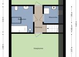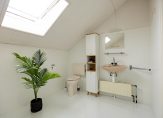 In de wasruimte is plek voor de wasmachine en droger en hier hangt ook de HR-ketel. Aan de andere zijde van de overloop is de tweede badkamer, met een in 2023 geplaatst dakraam. De ruimte is ingedeeld met een ligbad, douche, toilet en een wastafel.
