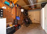 Een schuifdeur, bij het tv-gedeelte in de woonkamer, biedt toegang tot een gang. Hieraan grenzen de master bedroom, een luxe badkamer en de inpandige garage. De garage, met ook een zijingang, heeft een lengte van bijna 6 meter.