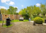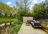 Aan de voorzijde zie je een keurig onderhouden tuin, de oprit met carport en een poort die leidt naar de achtertuin. Deze poort is samen met de buren geplaatst. Via het pad in de zijtuin, die steeds breder wordt, loop je naar het mooiste stuk van het perceel; de achtertuin. Hier zie je een groot terras met dubbele zitgelegenheid, een gazon, gevarieerde beplanting en een trap die leidt naar het fantastische terras aan het water. Neem even de tijd om deze plek te bewonderen… water en groen maken deze plek tot een droomplek.