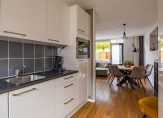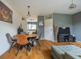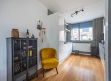 Grote ramen aan de westkant zorgen voor mooi uitzicht naar de tuin, en voor fijne lichtinval in de gezellige woonkamer. Met een breedte van 5.10 meter is er genoeg plek voor een zit- en eethoek, een tv-meubel en een dressoir. Aan de voorzijde is de ruime keuken, met fijne ochtendzon en uitzicht naar de rustige straat. Aan twee kanten staat een lichte wandopstelling (2008) met een gaskookplaat, afzuigkap, combimagnetron (2022), koelkast, vriezer en een vaatwasser (2021).