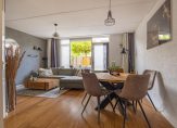 De eerste indruk is goed, want deze woning is netjes onderhouden. Dit geldt ook voor de voortuin, met een pad dat naar de voordeur leidt. Achter deze deur is de ruime hal met de meterkast, toiletruimte en de trap naar de eerste verdieping. De laminaatvloer ligt op bijna de hele begane grond en, heel handig, onder de trap is een berging.