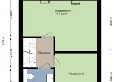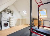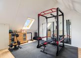 Een vaste trap geeft toegang tot de zolder, met twee dakramen en een berging in de schuinte van het dak. Ook hier ligt laminaat op de vloer en aan de kant van de trap is de opstelling van de wasapparatuur. Nu is deze kamer ingericht als sportruimte, maar een invulling als slaapkamer is goed mogelijk!