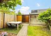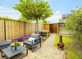 Niet alleen de voortuin, maar ook de achtertuin ziet er supernetjes uit. De achtertuin is gesitueerd op het westen, met zon gedurende de hele dag. In de berging is ruimte voor de fietsen en bij de overkapping is een poort naar de steeg. En heb je geen groene vingers? Deze tuin is heel onderhoudsvriendelijk!
