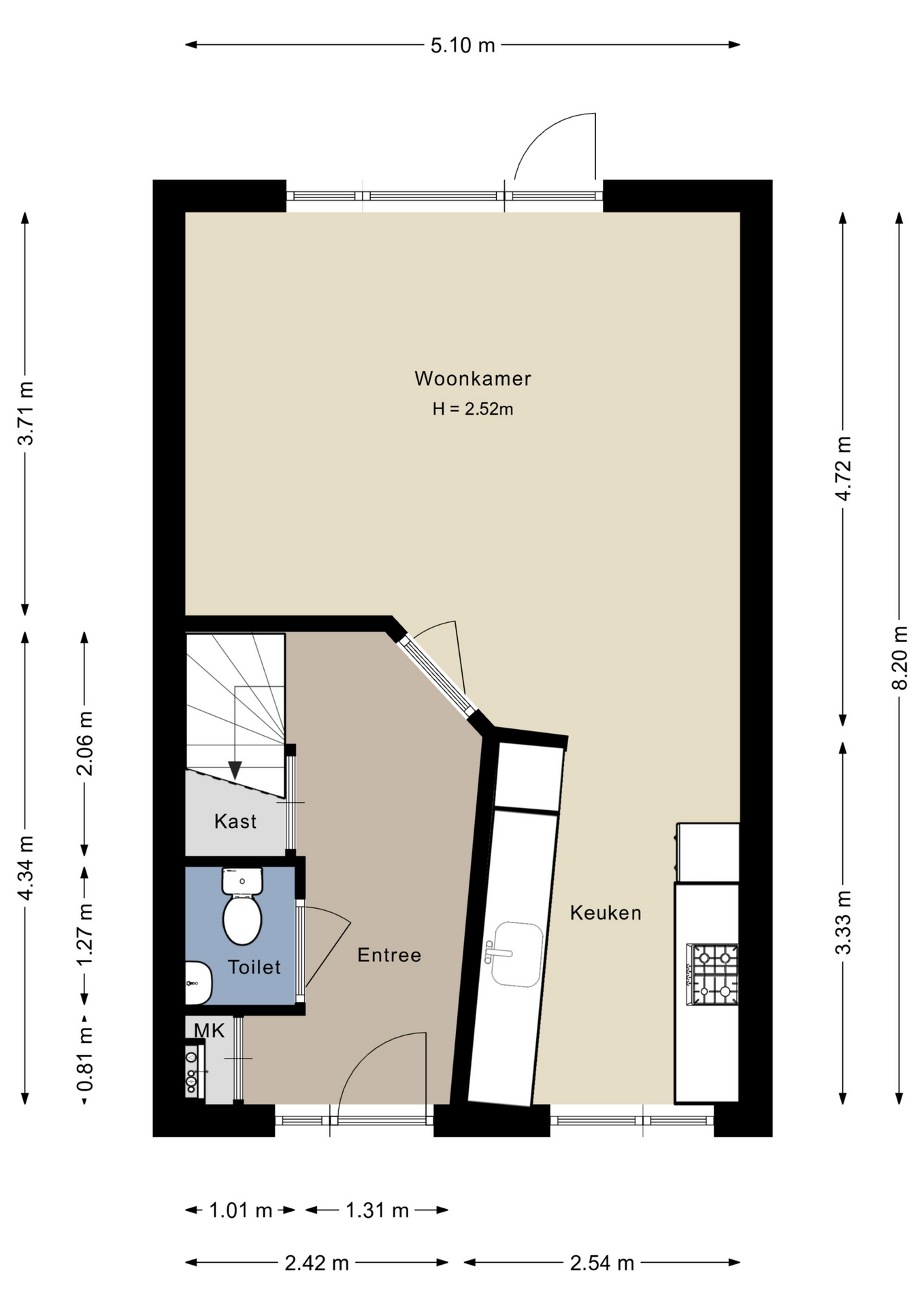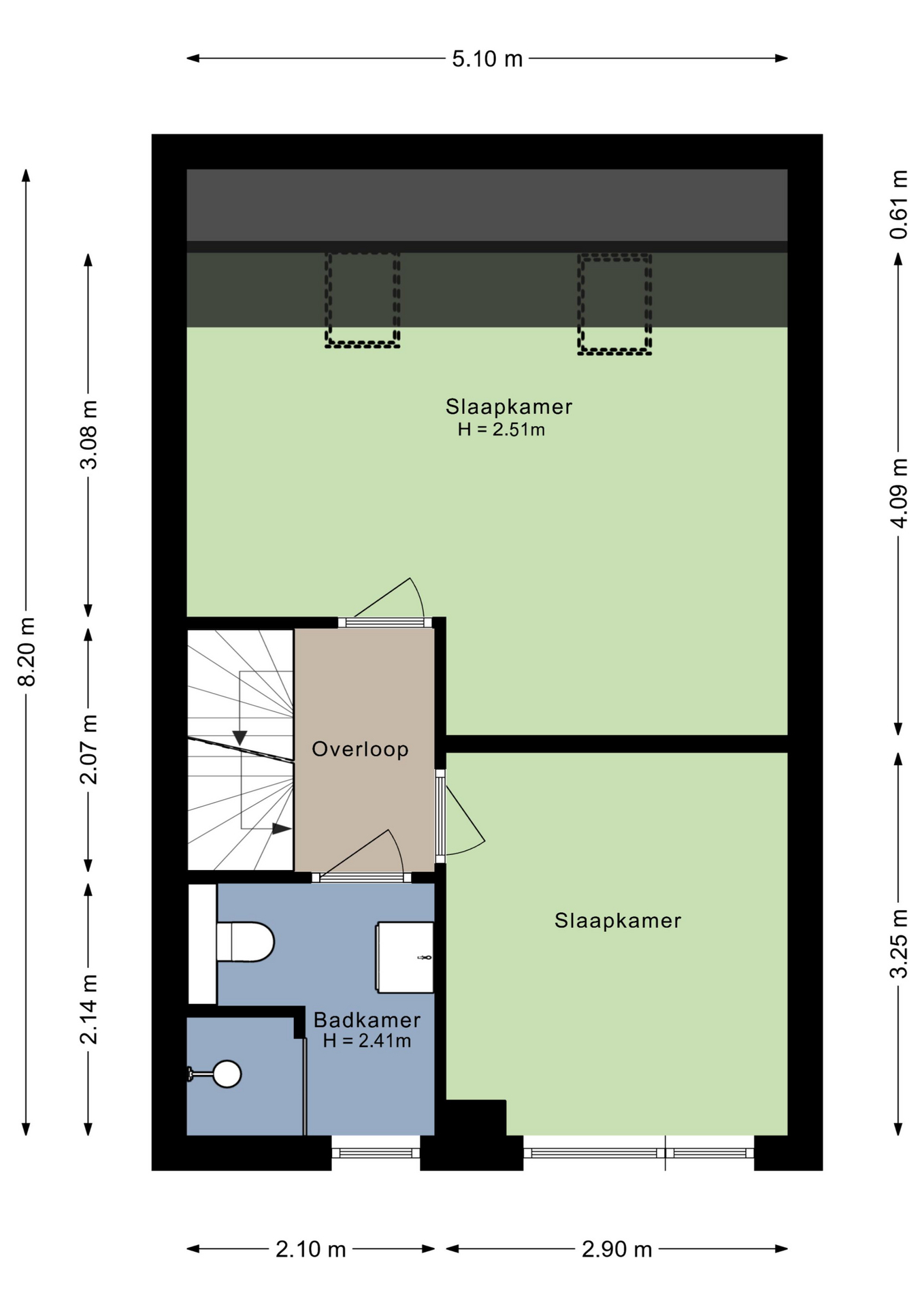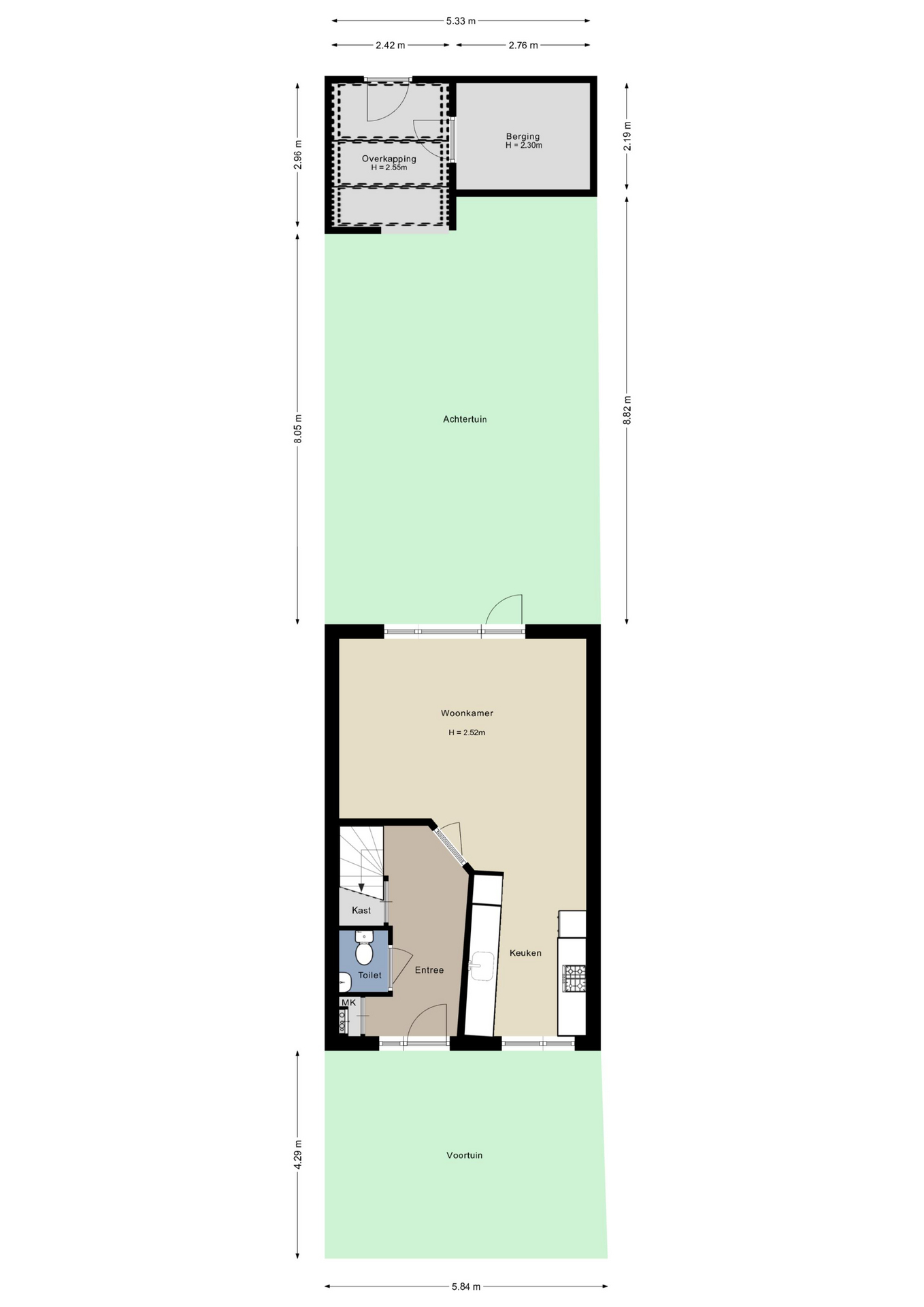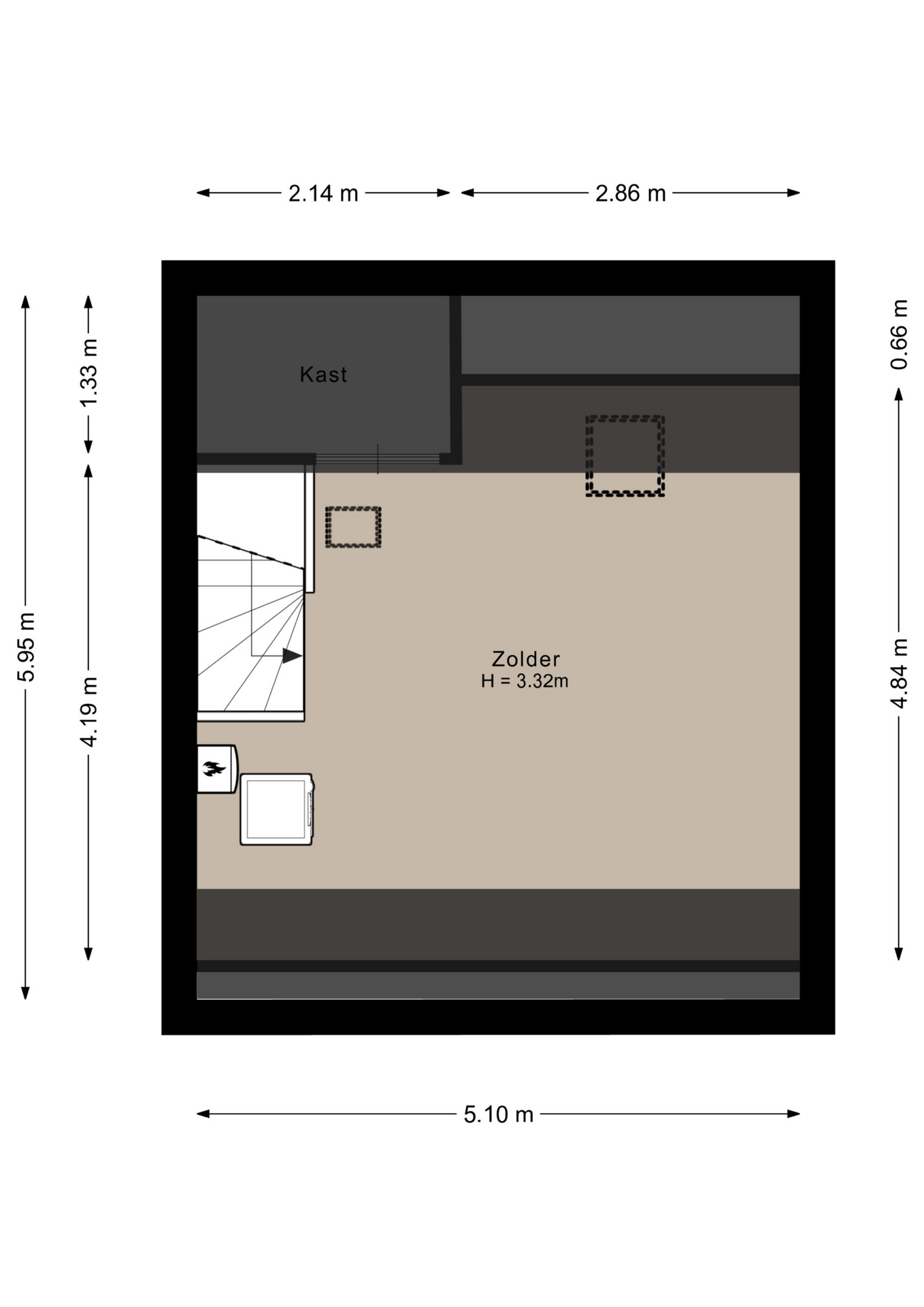 – Vaste trap naar de tweede verdieping (mogelijk slaapkamer);