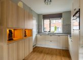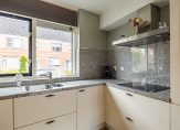 Nodig vrienden en familie maar uit voor een etentje, want deze woning heeft een goede keuken! In een mooie L-vorm, met het spoelgedeelte bij het raam en een aanrechtblad van graniet. Ook een deel van de achterwand is van graniet, wat de keuken een luxe uitstraling geeft. Alle benodigde apparatuur is ingebouwd: een inductie kookplaat, afzuigkap, vaatwasser, combi-oven en een koelkast.