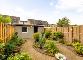 De achtertuin is, net als de woning, zeer goed onderhouden. Het terras is een fijne plek om in de zon te zitten, en verder zie je borders met mooie beplanting. Een deel is groenblijvend, en verder zijn er ook kleurrijke bloemen te zien. De dubbele berging is de perfecte plek voor de fietsen en het tuin-/klusgereedschap. Het tuingereedschap heb je weinig nodig, want zowel de voor- als achtertuin is heel onderhoudsvriendelijk.