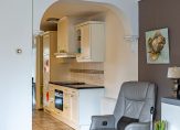 De woonkamer en eetkamer zijn onderling verbonden via de keuken. In de keuken staat een zeer royale opstelling in een landelijke stijl, met een grote spoelbak en aanrechtbladen van natuursteen. De inductie kookplaat, afzuigkap, combimagnetron, vaatwasser en koelkast zijn ingebouwd. In 2002 is de keuken geplaatst en een deel van de apparatuur is vernieuwd in de periode 2015-2021.