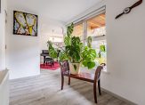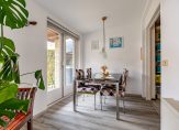 Aan de achterzijde is de eetkamer, met openslaande deuren naar de tuin. Verrassend is de naastgelegen multifunctionele ruimte, in gebruik als muziekkamer. Een invulling als werkkamer, speelkamer of tv-kamer is goed mogelijk.