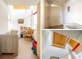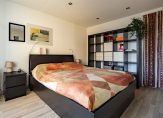 Aan de voorzijde zijn twee slaapkamers, met een speels hoogteverschil in het plafond. Deze kamers zijn ingericht als royale tweepersoonskamer en kinderkamer. De vierde slaapkamer, ingericht als werkkamer/hobbyruimte, is aan de achterzijde.