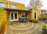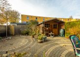 Vanuit de eetkamer en de muziekruimte is de royale achtertuin op het westen te bereiken. In 2016 is er een ruime, houten berging geplaatst en de overkapping is een mooie toevoeging in de tuin. Een groot deel van de tuin is bestraat en aan de achterzijde is een poort naar de steeg.