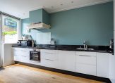 Niet alleen de eetkamer, maar ook de in 2011 vernieuwde keuken is heerlijk ruim. In 2011 is de lange hoekopstelling geplaatst, met een prachtig aanrechtblad van zwart graniet. De inductie kookplaat, afzuiging (in schouw), combi-oven, vaatwasser en koel-/vriescombinatie zijn ingebouwd. Met een hapje en een drankje loop je zo naar de eetkamer, zitkamer en de tuin.
