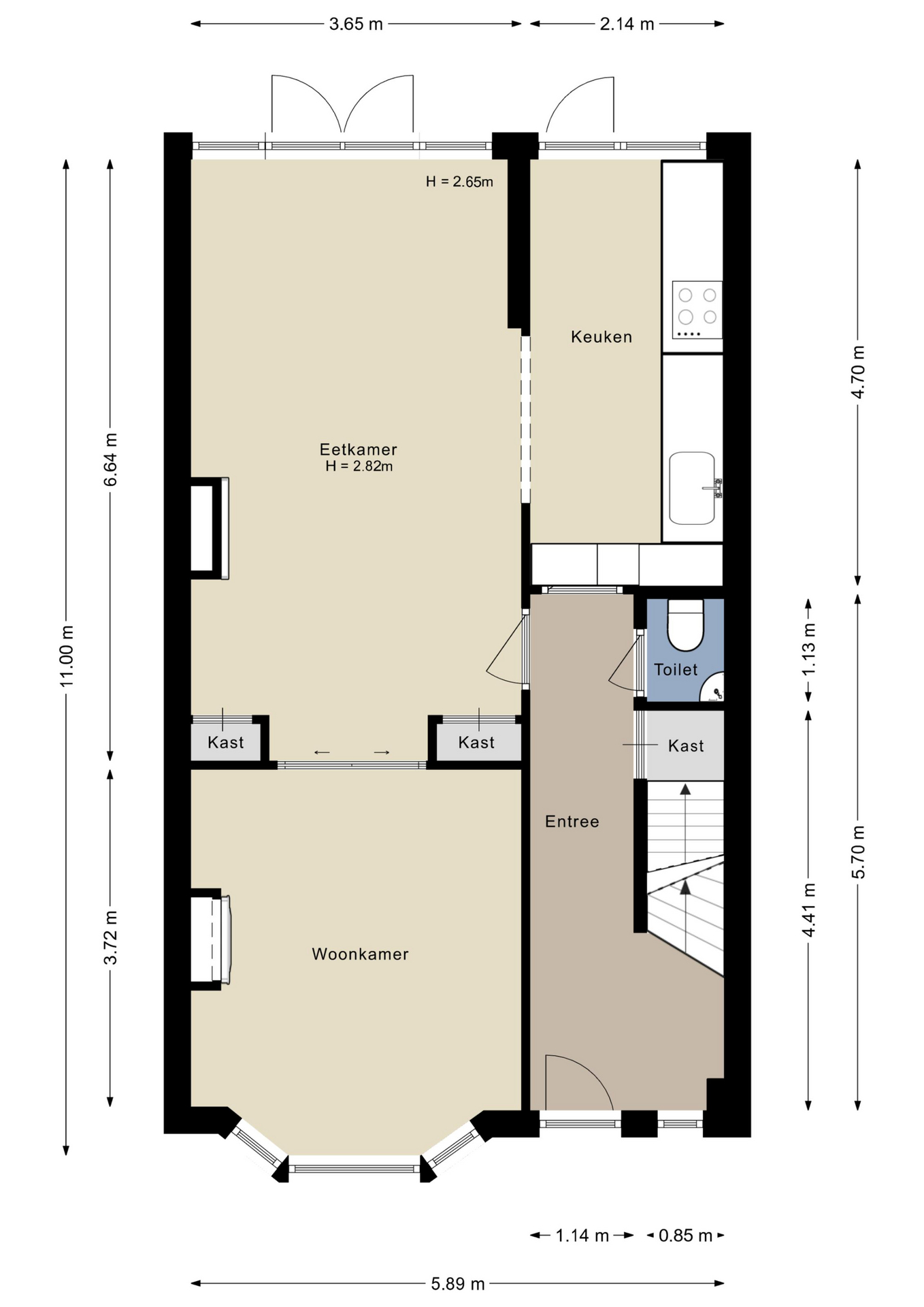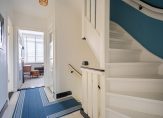 Met een breedte van bijna 6 meter en drie volwaardige verdiepingen is dit een heerlijk ruim huis. Aan de voorzijde, naast de erker, is de overdekte entree die toegang geeft tot de royale hal. Het hoge plafond, de trekbel, tegelvloer, paneeldeuren en de trap met loper vormen een fraai geheel. Aan het einde van de hal is de toiletruimte, met een wandcloset en een klassiek hoekfonteintje.