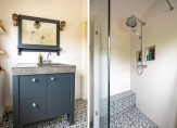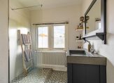 Ook de badkamer en een separaat toilet zijn vanaf de fraaie overloop te bereiken. De badkamer, vernieuwd in 2017, is ingedeeld met een ruime inloopdouche en een groot wastafelmeubel. Fraaie elementen zijn de betonnen wasbak, vloertegels en de wandafwerking.