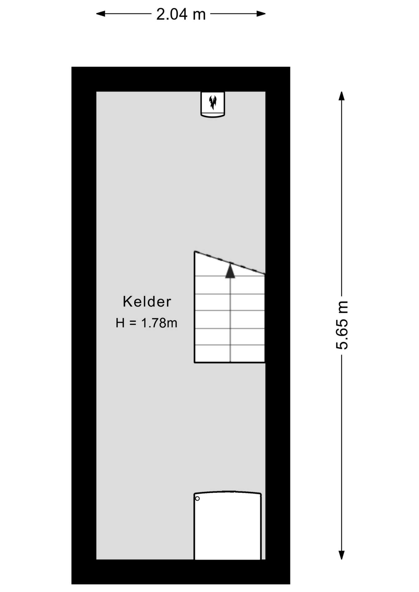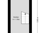 Achter een van de deuren in de hal is een trap naar de wijn-/provisiekelder, met een plafondhoogte van circa 1.78 meter.
