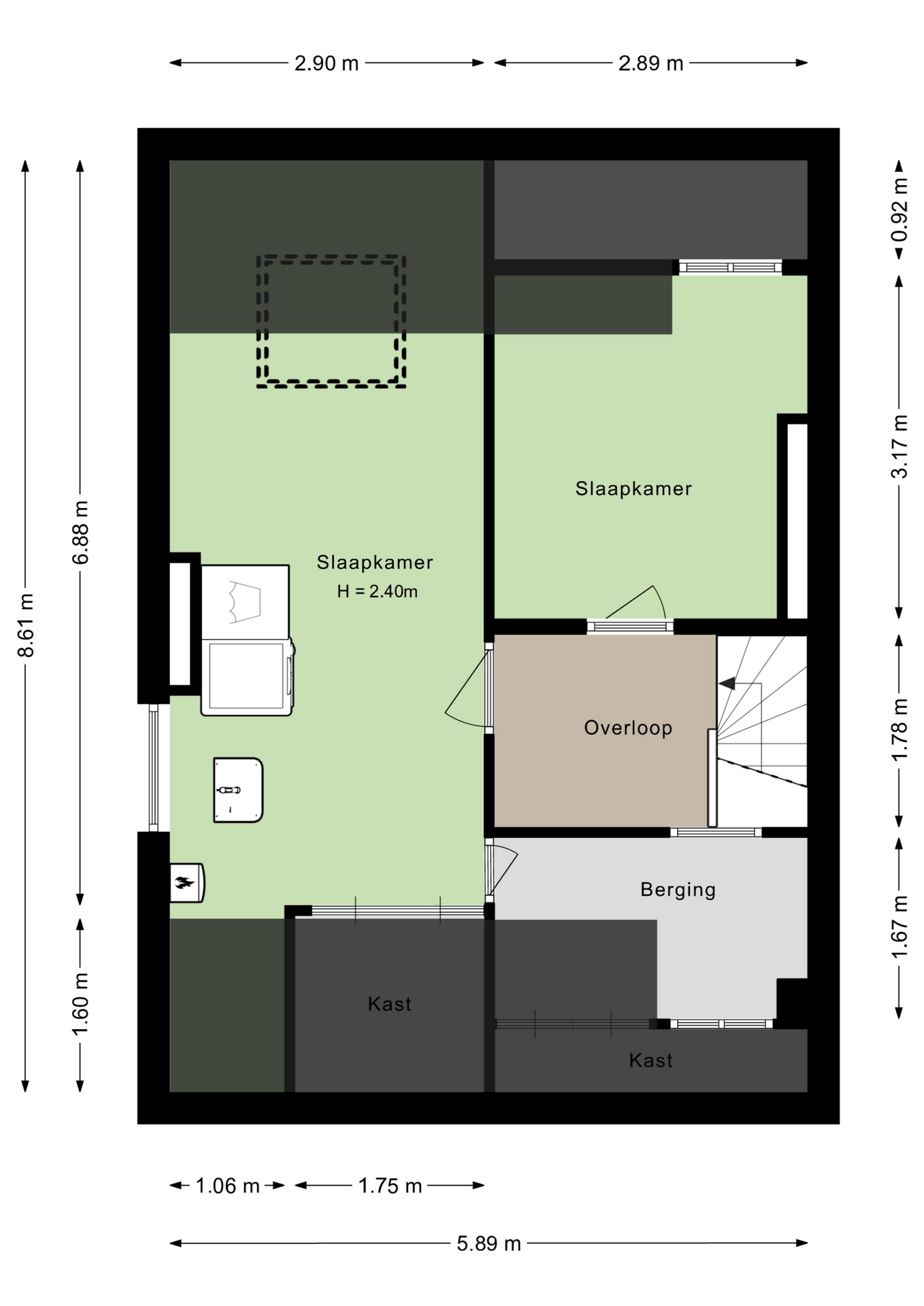 Zijn drie slaapkamers niet genoeg? Deze woning heeft er vier, en mogelijk zelf vijf! In slaapkamer nummer vier, in gebruik als werkkamer, hangt een airco-unit en de naastgelegen hobbyruimte, met ramen aan twee zijden, kan worden verbouwd tot vijfde slaapkamer. Ook is er een berging op deze verdieping, voor de koffers en andere spullen uit het zicht op te bergen.