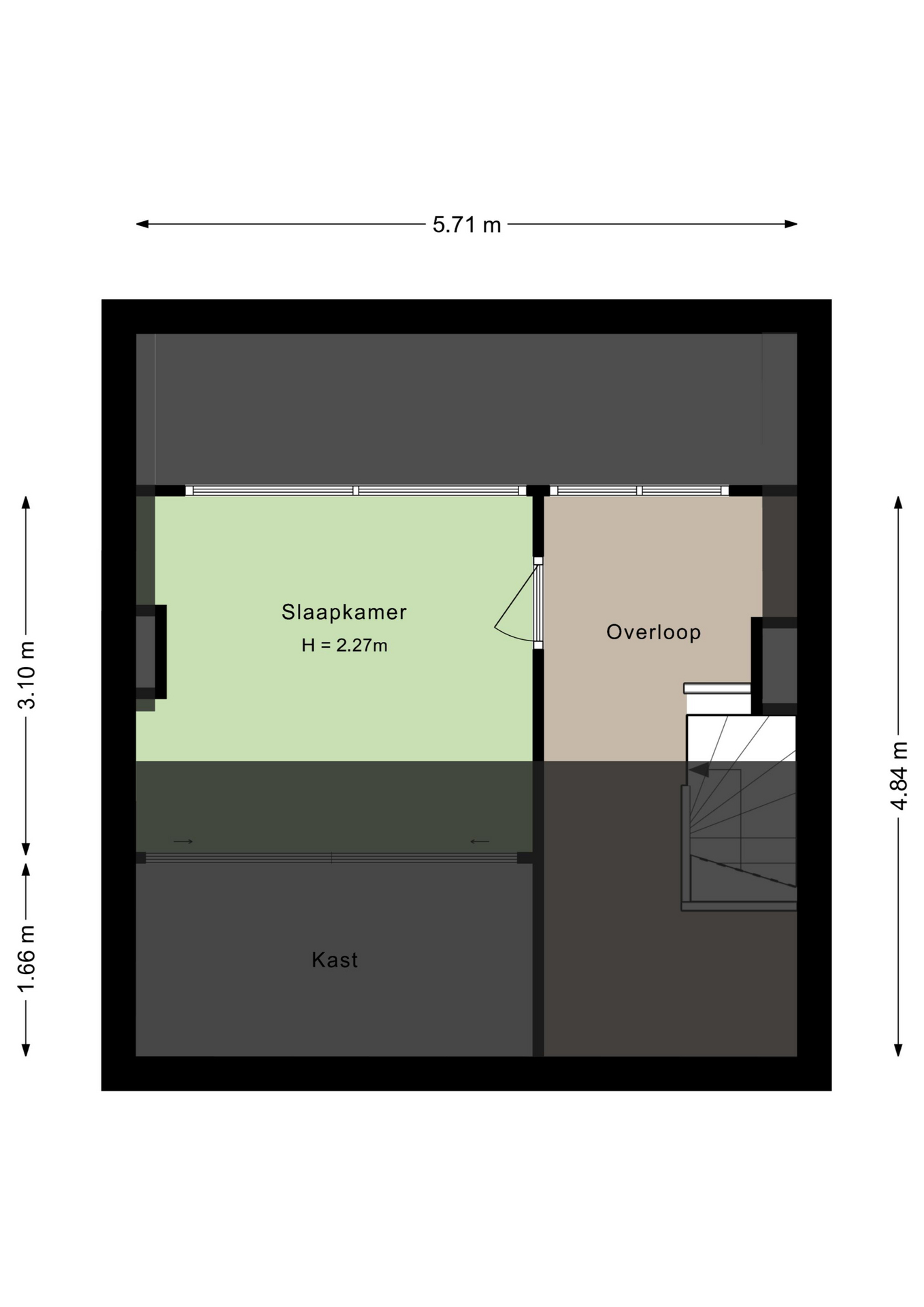 Dankzij de dakopbouw is de zolder getransformeerd in een extra slaapkamer en een overloop, die beiden veel praktische bergruimte bieden. Het uitzicht vanuit de slaapkamer is fraai en de nokhoogte van circa 2.27 meter maakt deze slaapkamer tot een volwaardige ruimte in huis.