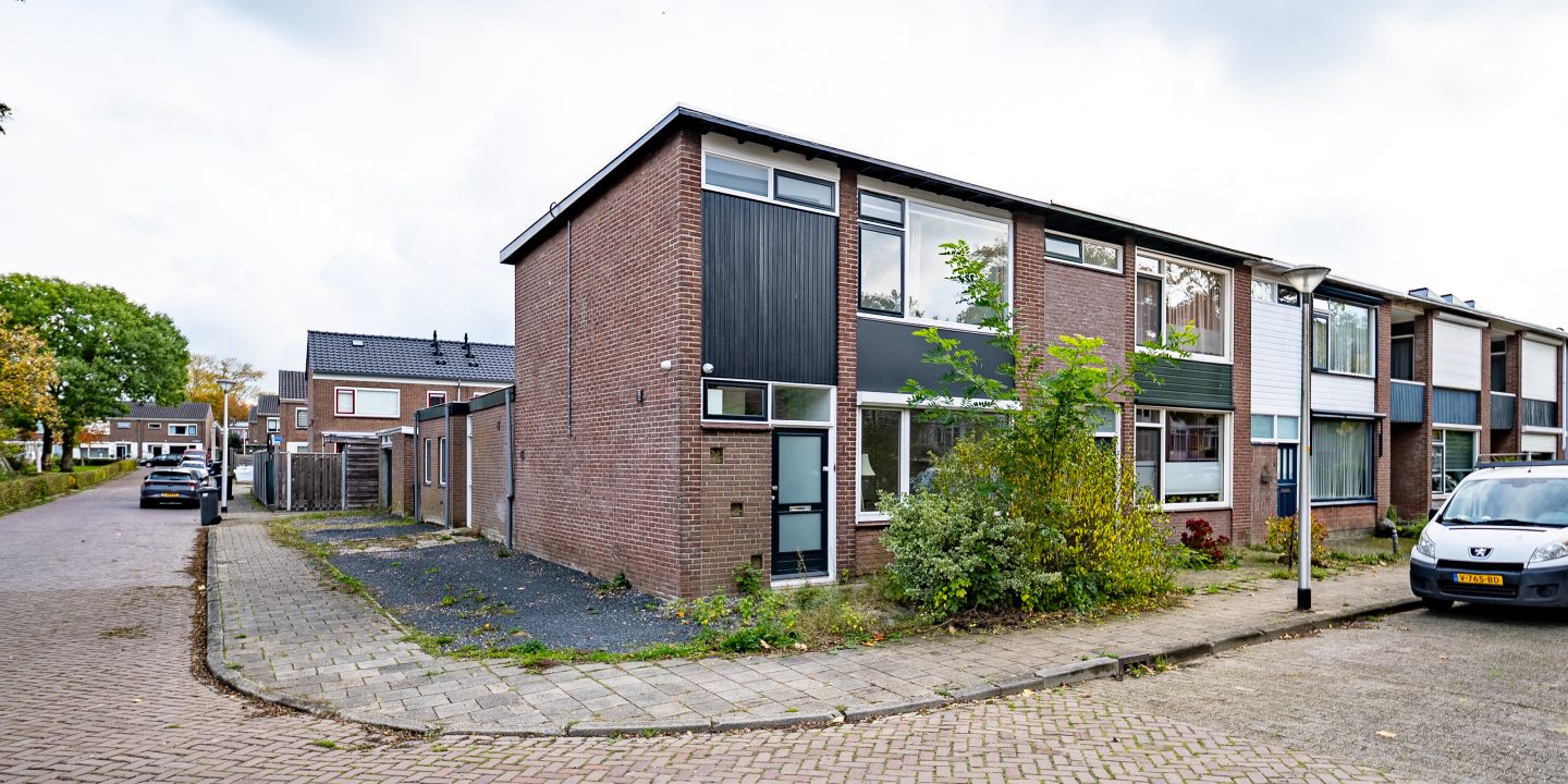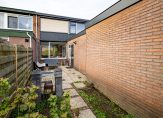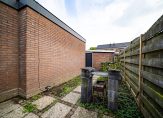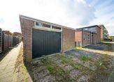 Vanuit de keuken loop je de achtertuin in, gesitueerd op het oosten. Een groot deel van de tuin is bestraat en vanaf hier is er toegang tot de garage/berging, met een stalen kanteldeur en een oprit. De achtertuin heeft een eigen achterom, die je ook naar de ruime zijtuin brengt. In de voortuin zie je beplanting, die ervoor zorgt dat er weinig inkijk in de woonkamer is.